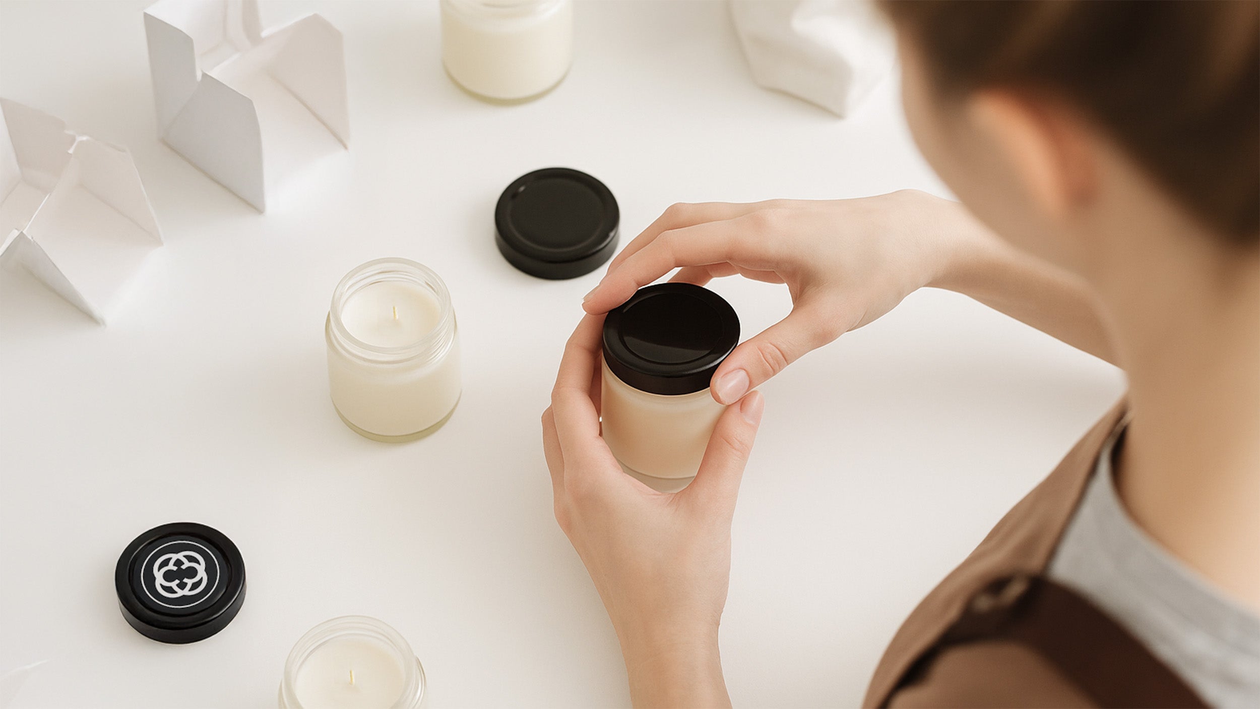 Cire végétale, mèche en coton et matériaux recyclables.